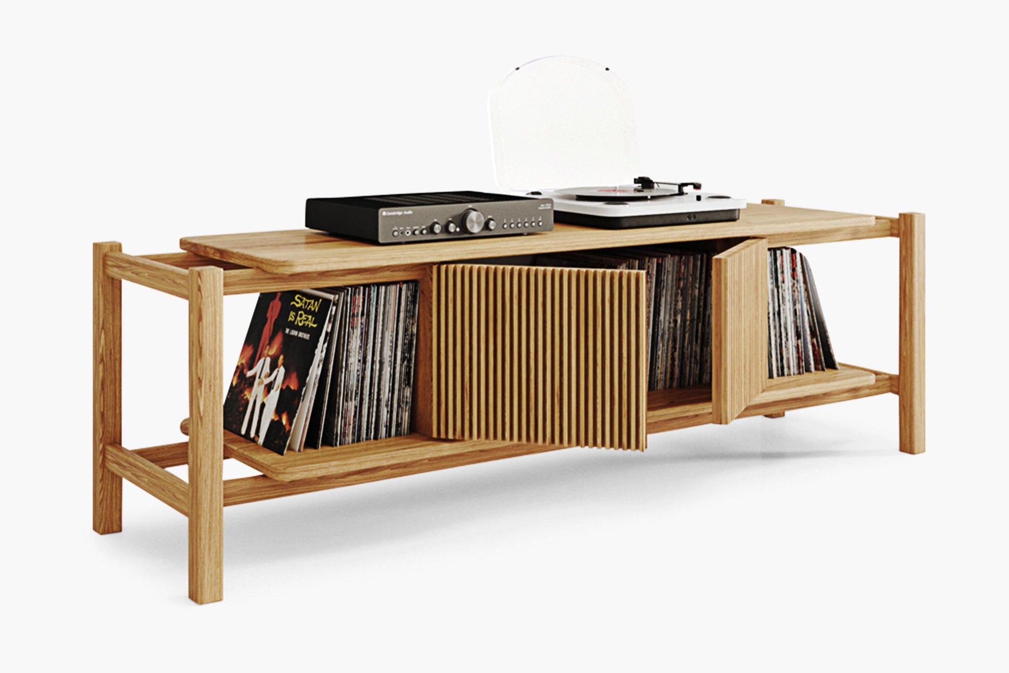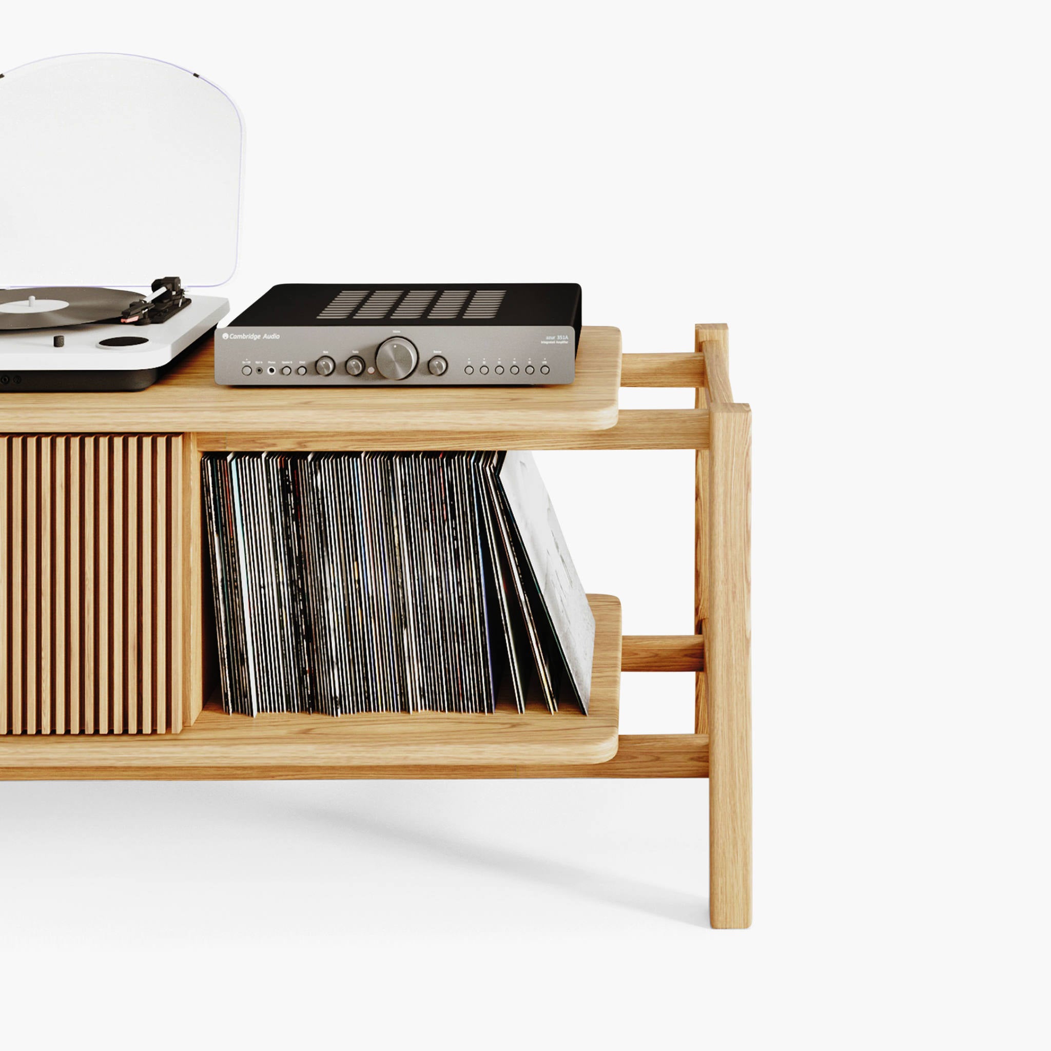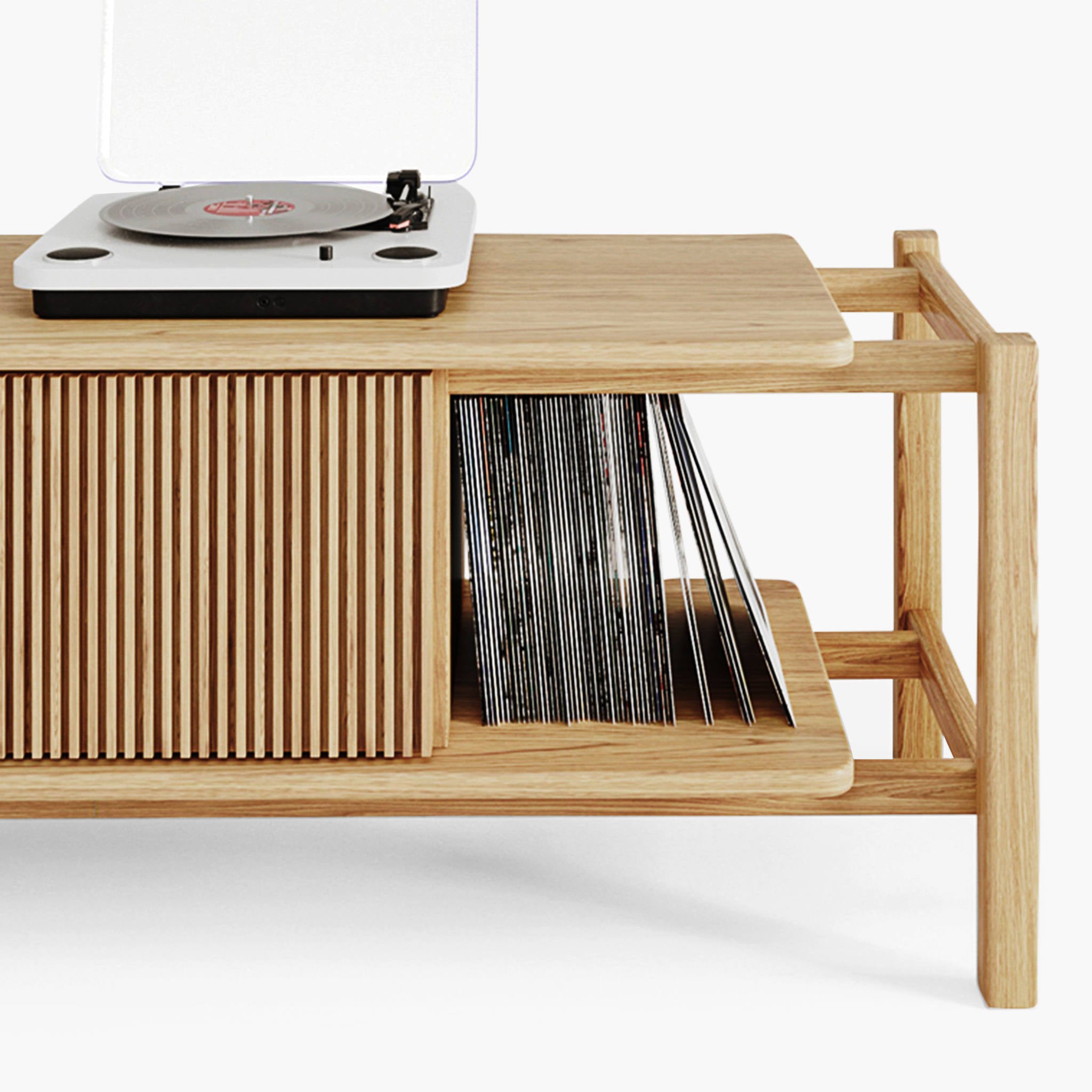 Każdy element tej konsoli jest starannie wykonany z najwyższą dbałością o szczegóły, zapewniając nie tylko piękny wygląd, ale także długotrwałą trwałość. Wykonany z litego drewna i charakteryzujący się wyjątkowym kunsztem, ten element jest wyjątkowy i ponadczasowy, co czyni go idealnym dodatkiem do każdego wnętrza, szczególnie dla tych, którzy cenią wysokiej klasy sprzęt audio i eleganckie przechowywanie płyt winylowych .