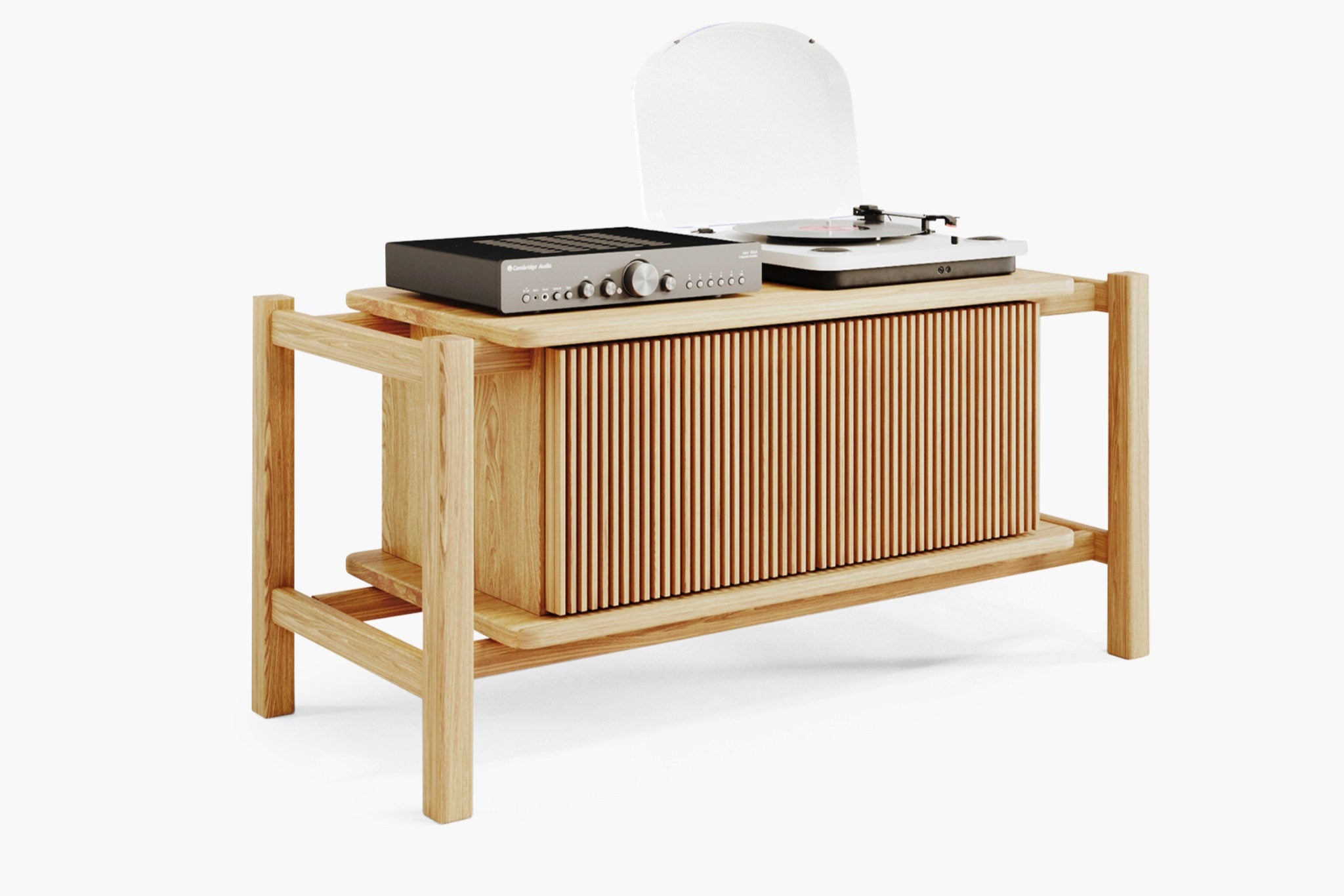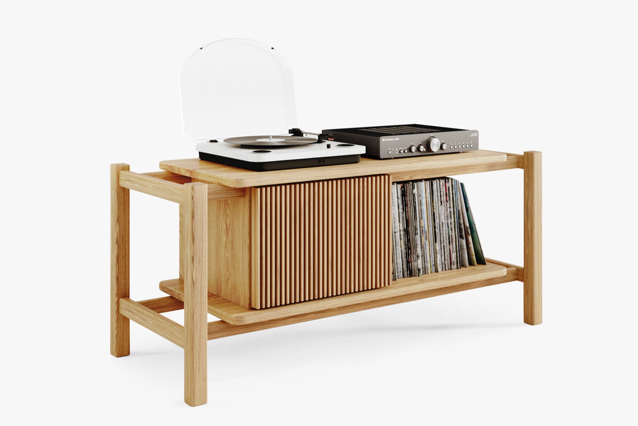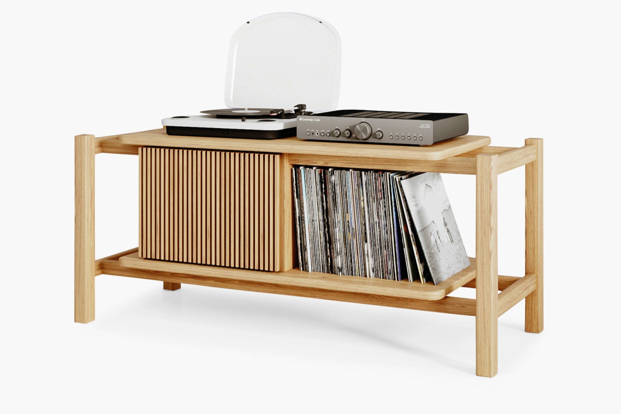 Każdy element tej konsoli jest starannie wykonany z najwyższą dbałością o szczegóły, zapewniając nie tylko piękny wygląd, ale także długotrwałą trwałość. Wykonany z litego drewna i charakteryzujący się wyjątkowym kunsztem, ten element jest wyjątkowy i ponadczasowy, co czyni go idealnym dodatkiem do każdego wnętrza, szczególnie dla tych, którzy cenią wysokiej klasy sprzęt audio i eleganckie przechowywanie płyt winylowych .