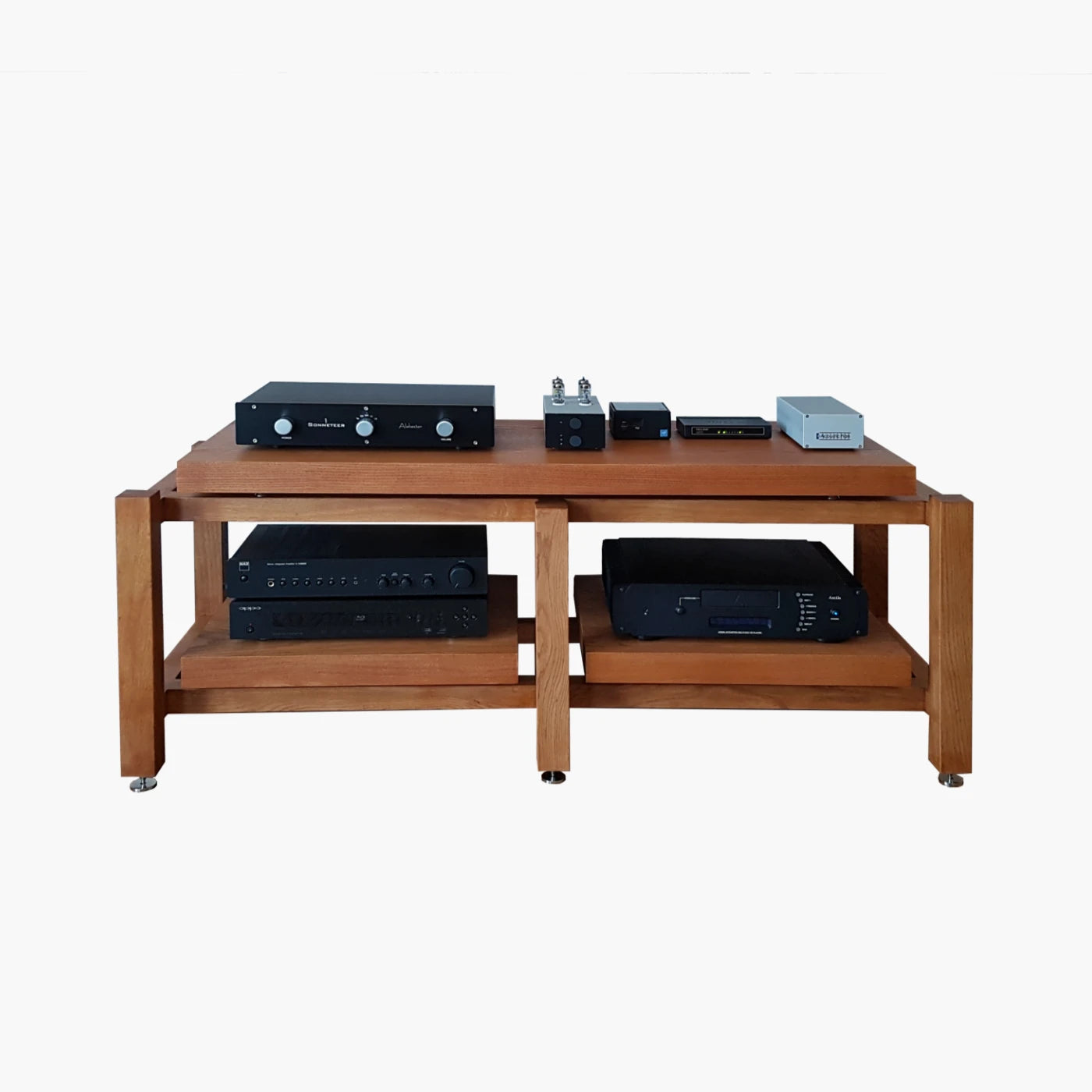 Tak, wykonujemy stolik audio tak, aby był maksymalnie sztywny, stabilny i pewny w użytkowaniu, bez kołysania oraz z solidnym podparciem półek pod sprzęt audiofilski. Ma to szczególne znaczenie przy ciężkich wzmacniaczach, końcówkach mocy i przede wszystkim przy gramofonie.
