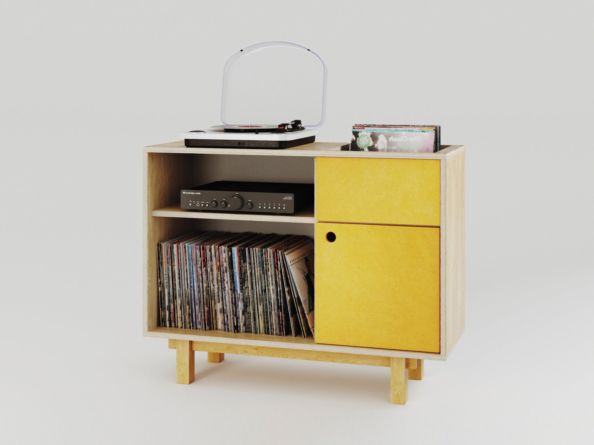 By combining functionality with aesthetics, this cabinet becomes a practical addition to your home—offering easy access to your favorite vinyl records and turning the process of browsing through your collection into a pleasurable ritual. The modern and refined look makes it a standout feature in any room, adding a touch of originality to your space.